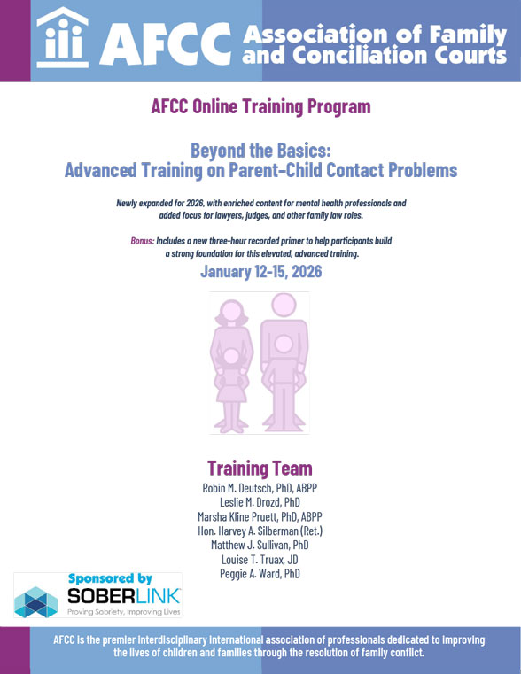 AFCC offers a variety of virtual training programs on topics including parenting coordination, child custody evaluation, and advanced issues in child custody. Programs are typically offered in December and March. If there are no upcoming programs posted on this page, you can purchase recordings of previous programs by toggling to the recorded trainings programs below.